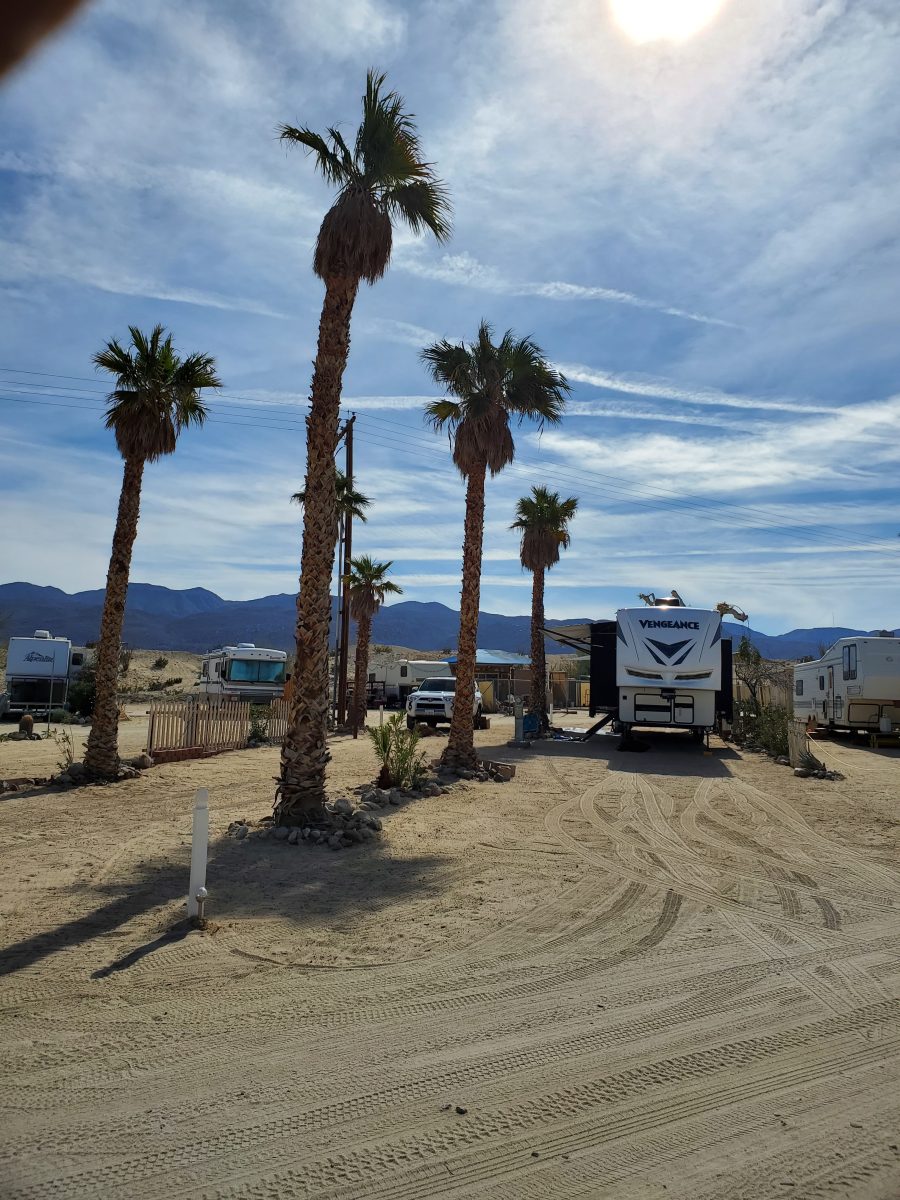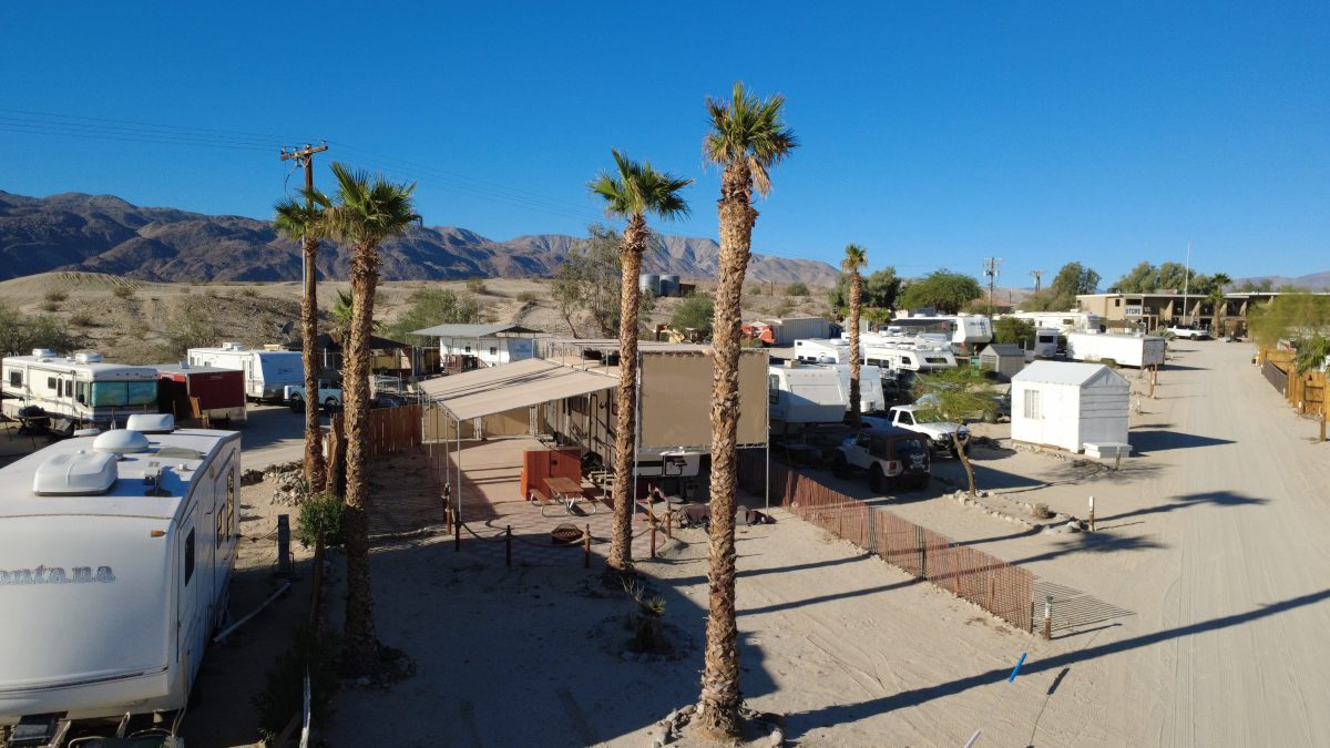 Site 23 in the Desert Ironwood RV Resort is over 6,000 sf and right across the street from Ocotillo Wells State OHV Park (80,000 acres) and adjacent to endless trails on BLM land. The Resort offers a pool, a small market, and ATV rentals. Lot improvements include a 1,800 sf custom shade/awning system to keep your coach sheltered, a 750sf concrete driveway/patio, a 450sf pavered patio extension with fire pit, privacy fencing, 5 palm trees, full hook-ups including 50-amp power, water, and sewer. A second power pedestal is available for guests with a second RV. Ride off-road right from your space to the OHV Park and open trails. Have your desert home waiting for you without having to hook up, tow, or service tanks on every trip. Site improvements available at cost. Space rent is approximately $480 per month.