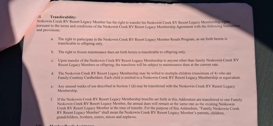 Neskowin Creek Or, Cascade Meadows OR, Beechwood WA, RV Resort Legacy Membership Package $7900 Package Addendum in 2015. Selling for $4300 + share $450 transfer fee.