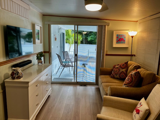 5 Minutes from the Beach!! Park Model for sale in Seminole FL with1 Bedroom, 1 bath with 2 additional living areas, covered front porch with an open view and 2 parking spaces with entry steps on both sides. $49,500 furnished PETS ALLOWED Recent Improvements include: New Weatherproofing Roof (lifetime guarantee), new Luxury Vinyl Plank Flooring, HVAC Air duct replacements, HVAC Micro Air Filters, new toilet & plumbing fixtures, new entry steps (both sides), new sliding glass door, new 4×6 storage shed and 1 yr HVAC maintenance contract. Bickley RV Park in Seminole FL has lots of amenities including a heated pool, clubhouse with year-round activities, dog park, Wi-Fi, BBQ facilities, laundry, treadmill, a ping pong and pool table. 5 minutes to beautiful Madeira Beach on the Gulf and 1/2 mile from the 37 miles long Pinellas Trail, a greenspace for walking, jogging, or biking. Lots of good dining and shopping in the area. It’s a great place to call home either full-time or seasonal.