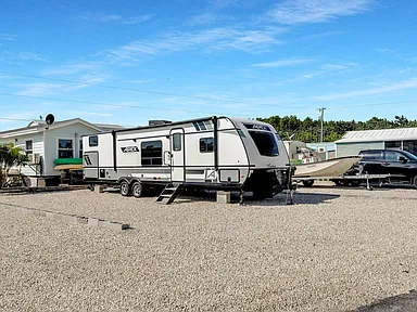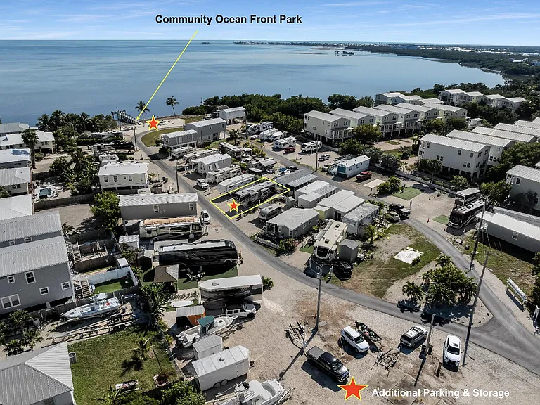 You won’t find a better deal on RV lot that has the prized right to build already in place. Park it for a while and build later or just build it now! Are you searching for a quiet, safe, and affordable place to park your RV or dreaming of building a cozy cottage near the ocean, with OPEN WATER views just steps away? Look no further than this clean and cleared 30′ x 50′ lot in Trailer Ranch By The Sea. Lot #34 is located just a few spaces from the oceanfront community park/beach & observation/fishing dock, offering the perfect spot to relax, unwind, and enjoy the beauty of the Keys. Move right into your new seaside escape and experience some of the most affordable living in the Florida Keys, peaceful, private, and centrally located in the heart of Marathon with easy access to the best restaurants, shopping, and activities. The vacant lot can be used for an RV or to build a stilted mobile home and is rogo exempt with one right to build. Taxes are included in the incredibly Low Annual HOA Fee of just $1,500. No rentals are allowed, preserving the quiet, intimate feel of the neighborhood, though owners may allow friends or family to stay up to 28 days. A separate trailer parking and storage area is also available for residents. All utilities are in place and full 50amp RV hook up, Just plug in and enjoy. This Co-Op community consists of 47 shares, with each owner holding one share. Full service Marina and Public Beach within walking, biking distance or take a 5min drive. Ready for cash offers, this is a rare opportunity, there’s truly nothing more affordable in the beautiful Florida Keys. RV is not included. Owner financing option available if qualified. Don’t hesitate to have your piece of paradise.
