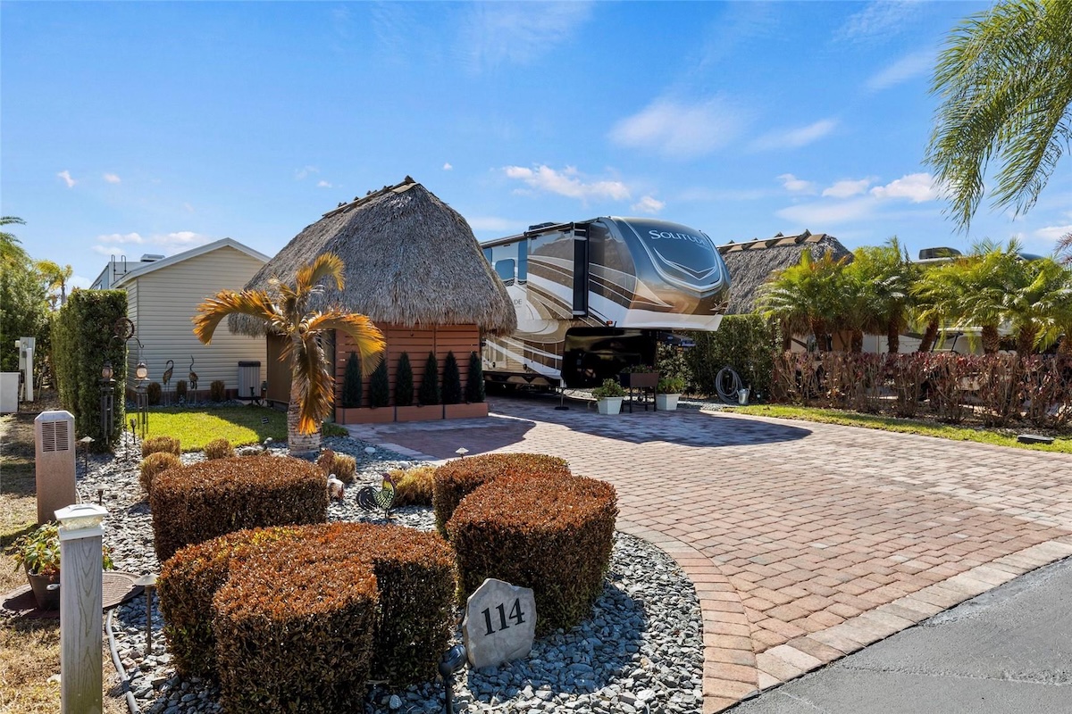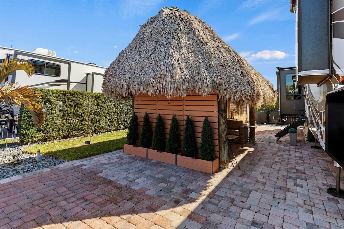 Enjoy 55+ resort-style living at the highly desirable Silver Palms 5-Star RV Resort, offering endless activities and a true getaway atmosphere. This well-maintained lot features a paver driveway, sprinkler system, and hardwired landscape lighting, creating a polished and welcoming outdoor space. Relax or entertain under the 12×16 tiki hut with electric. The property also includes a 12×16 shed with A/C and a bathroom, furnished with a sleeper sofa and coffee table—ideal for guest space, hobby room, or additional storage. Perfect for bringing your own RV and customizing your setup while enjoying an already upgraded lot. Excellent opportunity for seasonal or full-time RV living in Okeechobee. Resort amenities include clubhouse, fitness center, pickleball, shuffleboard, basketball court, spa/hot tub, laundry facilities, park, recreation facilities, gated entry, and storage. HOA covers water, sewer, trash, and lawn care. Optional purchase: Seller may consider selling the RV and customized lifted gas golf cart separately for an easy, turnkey transition.