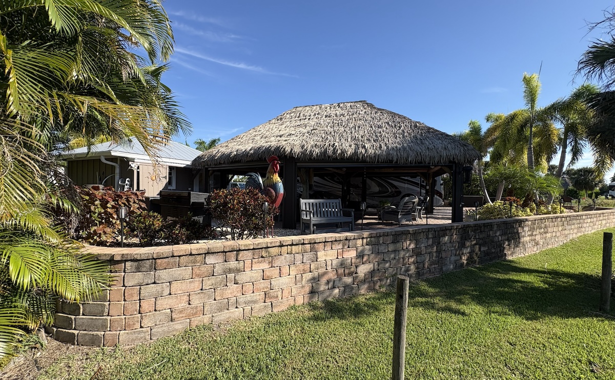 This spacious 5,170 square foot lot borders a conservation area and features a custom-built casita, large tiki hut, outdoor kitchen, beautiful landscaping, concrete pavers, irrigation and nighttime accent lighting.