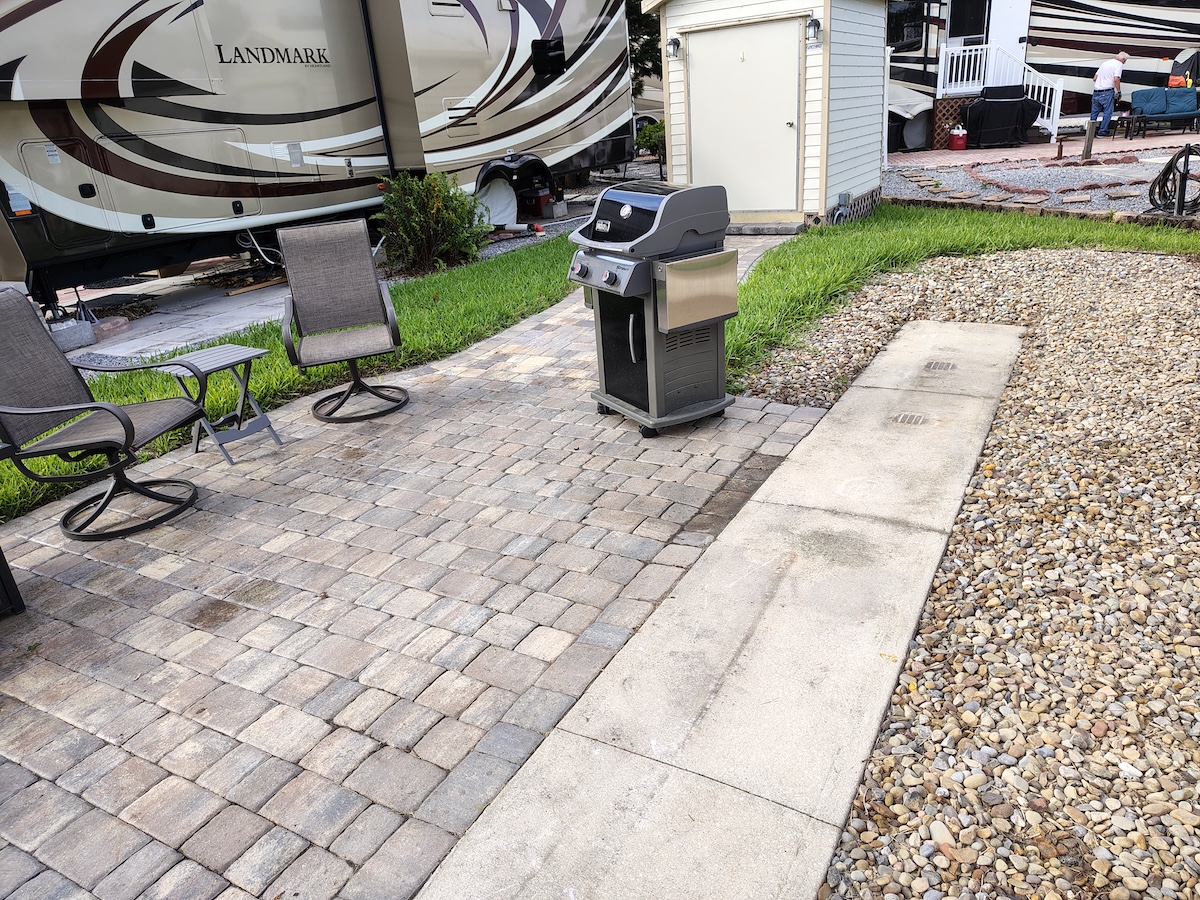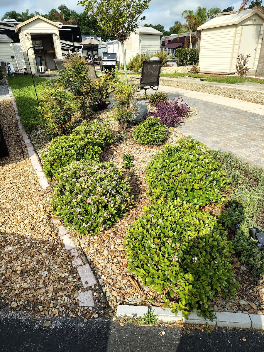 RV Resort at Torrey Oaks located just north of Wauchula FL. Beautiful lot is well maintained and landscaped with shrubs, colorful plants in river stone mulch bed and grass sides framing the recently installed pavers on the patio, walkway and golf cart charging station. Charging station with no cords to trip over. Landscape automatic watering system control box is in the 6×8 shed with workbench. Lot 82 will accommodate a 45 ft fifth wheel RV or class A motor home. Just steps away from the heated pool, fitness room, pickleball courts and shuffle board area on one end of the peaceful short street. At the opposite end is the rec center and billiard room. Tools for use can be checked out of the workshop by residents and there’s always caring, friendly neighbors to help. Roads are paved and parking for your unit is on concrete runners making a very nice and easy parking spot for your rig.