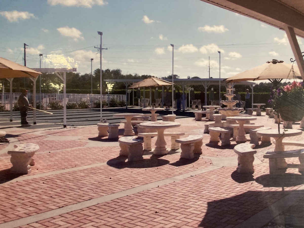 Lot has trees, grass and small garden area in back of RV. Very quiet location. The corner lot is approximately 60×55′ and has a concrete pad. It is located at rear of park two blocks from the boat dock and creek that leads to the gulf. The monthly HOA fees are $180 and covers water, sewage and trash pick-up. Certified park manager on premises. Amenities of the park include a pool, jacuzzi, shuffleboard courts and horseshoes. The clubhouse has the office, a laundry, library and work-out area. It has a full kitchen, toilets, a pool table and large meeting room with tables and chairs and TV. Lots of activities, especially from October through April when the park is full of snowbirds, including dances, bingo, quilting and jewelry making, water aerobics, card games, golf and shuffleboard and horseshoe contests.