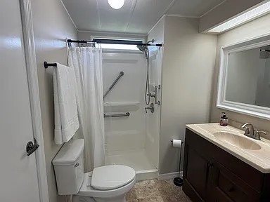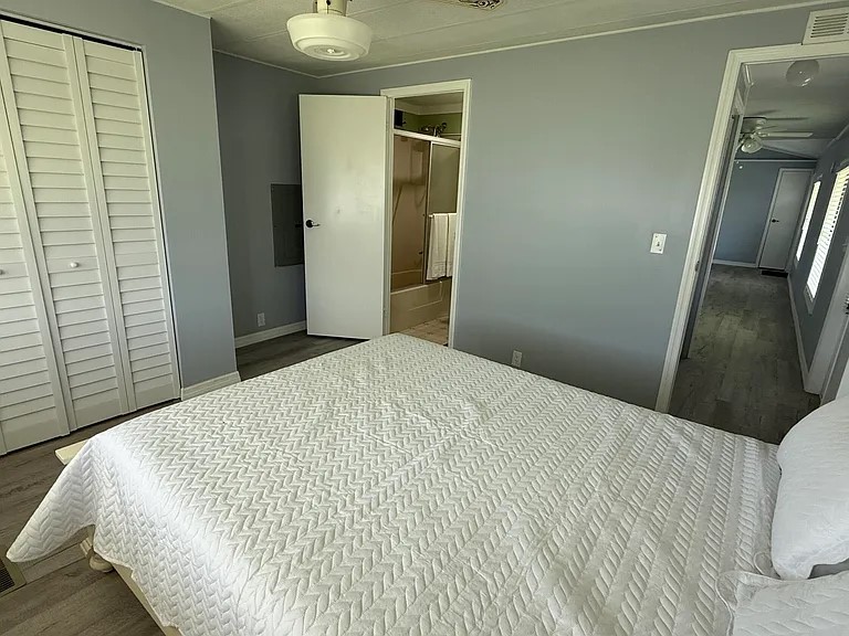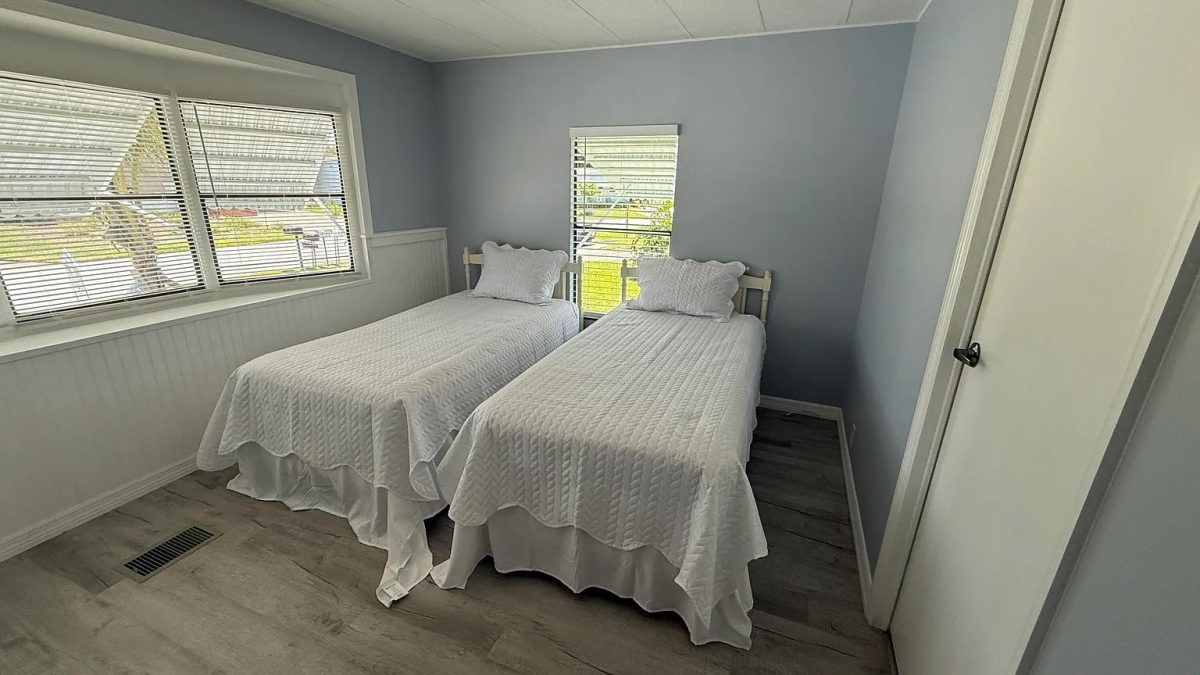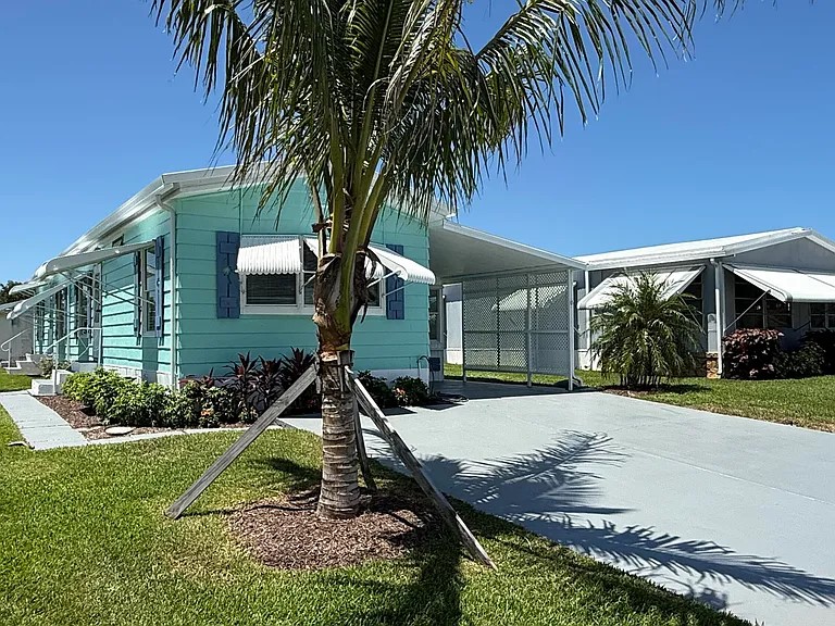 *ONLY HOA that specifically allows for motorhomes, RV’s, trailers and boat storage. EXTREME MAKEOVER!!! Gorgeous 2 Bedroom/2 Bath Manufactured home in Cambridge 55+ community in Hobe Sound. BRING YOUR BOAT/RV. All new vinyl plank flooring throughout over 3/4″ Ply-wood subfloors. 2X4 16” on center construction w custom tie downs. New Aluminum roof-over 2012. Electric zoned, well fed, sprinkler system, 2021 A/C. New Shaker Style bright white OPEN kitchen w quartz counters, LED lighting & stainless range, microwave & dishwasher. SPLIT Bedroom Plan. Both Bedrooms have ensuite baths. You enter the home into a FL room w custom staircase to Great Room. The 10X32 Bonus/Rec room is on the same level w a pegboard wall, washer/dryer, slop sink & beer frig. Great Curb Appeal!! Cambridge is mins to Ocean Beaches, ICW Boat Ramp & shopping.. YOU OWN THE LAND – ALL PETS WELCOME. Low HOA.