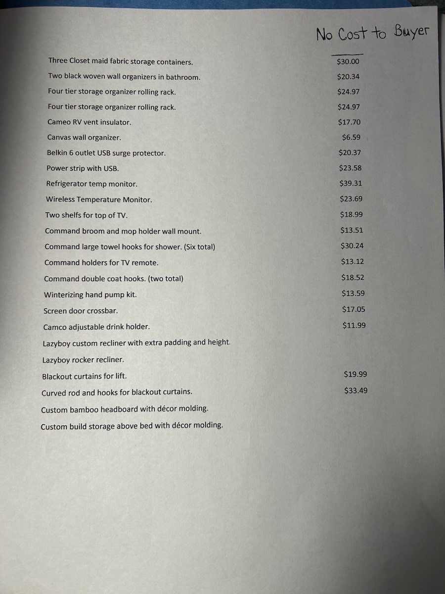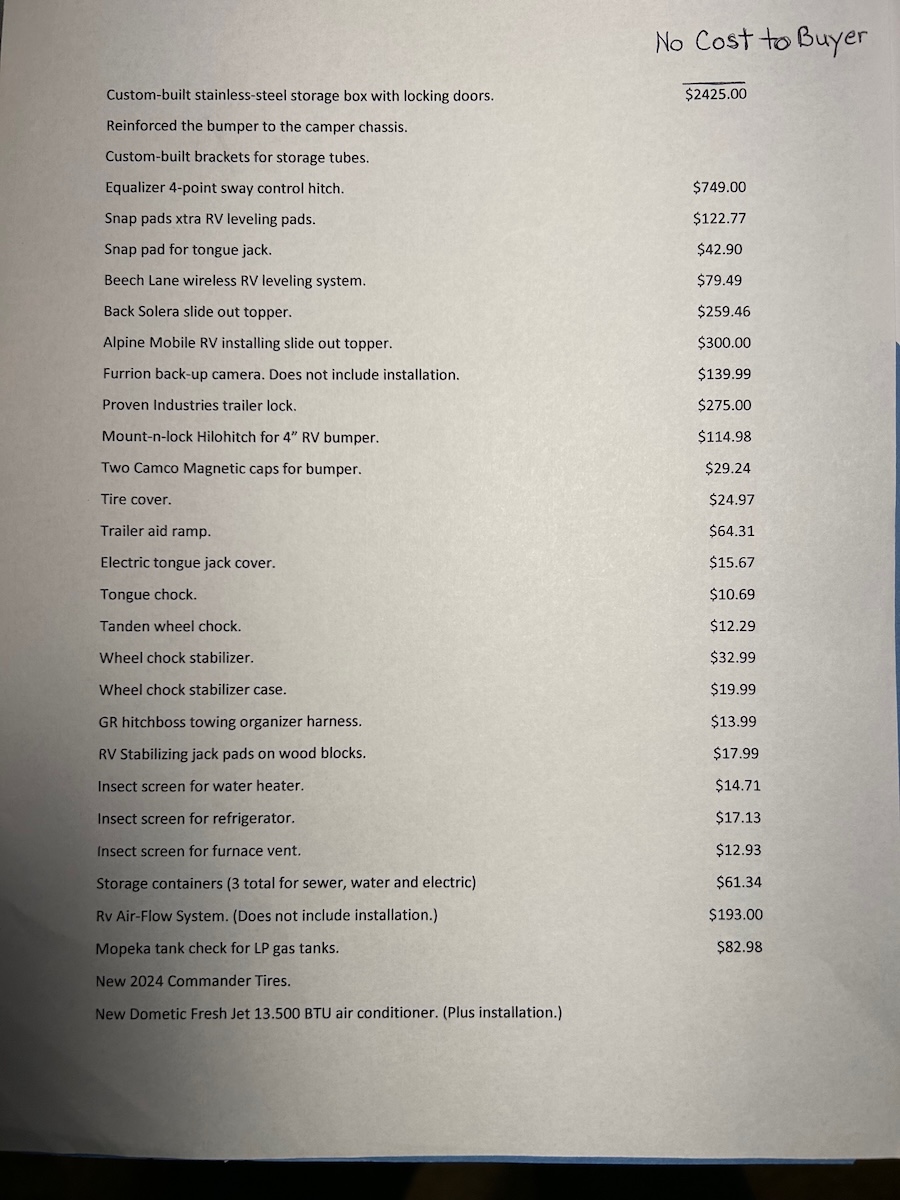 Our RV was prepped for travel in June 2025, including new housing batteries, a new shower head, ice maker valves, a kitchen faucet, and water filters. All systems are currently winterized and are now housed indoors for storage. All awning and lighting systems were double-checked and tweaked for maximum performance before storage. All seals were inspected and cross-checked for maximum performance before storage.