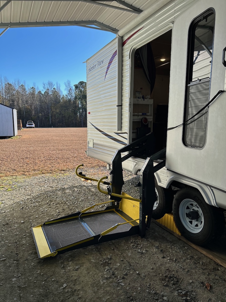 2018 Harbor View Handicap Accessible 30 Foot Travel Trailer. The AC unit, tires and battery were replaced in 2024. This travel trailer has many custom items such as a 60″ 1 piece roll in shower, Ricon wheelchair lift, Multi Function Remote which operates the awning, awning lights, rear entry door, slide room and chair lift. The bed is a Queen bed that measures 60″X74″ and the width has been extended by 12″. A wooded shelf has been added above the bed for extra storage. Extra storage has also been added to the underside with a custom built stainless-steel storage box with keyed locks and also extra storage tubes. A lists of items that we have purchased through the years will be listed in the image listings. This travel trailer has never had any type of damage and is smoke free. The 12,000 lb. Equalizer with 4 point sway control hitch will come with the travel trailer.