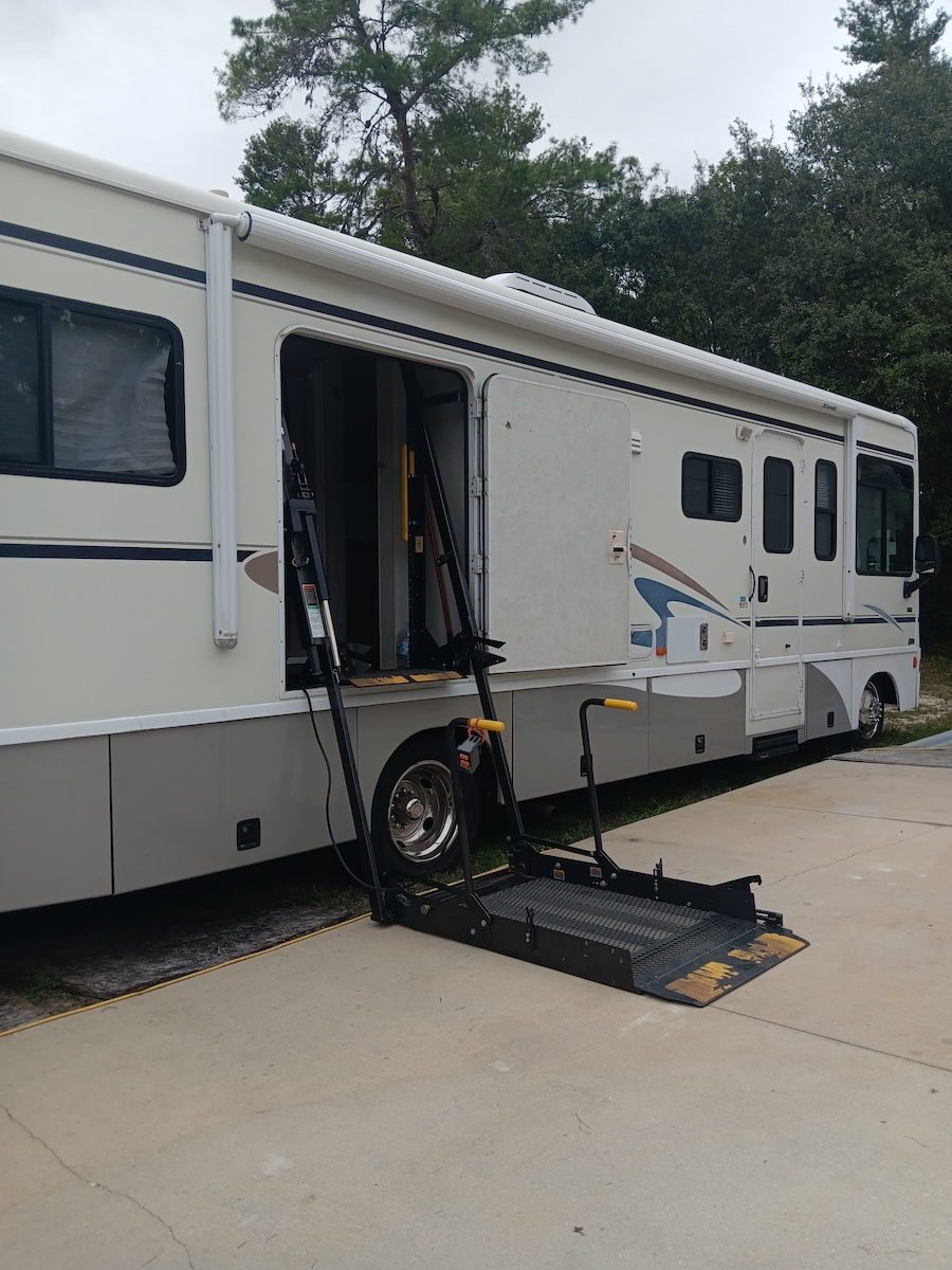 2004 Winnebago 33′ , factory installed wheelchair lift, l am a t7 para fully operate by myself. Workhorse Chassis GM 8100 vortex, 65kmi, good tires, electric awning,