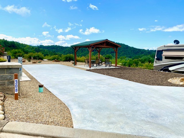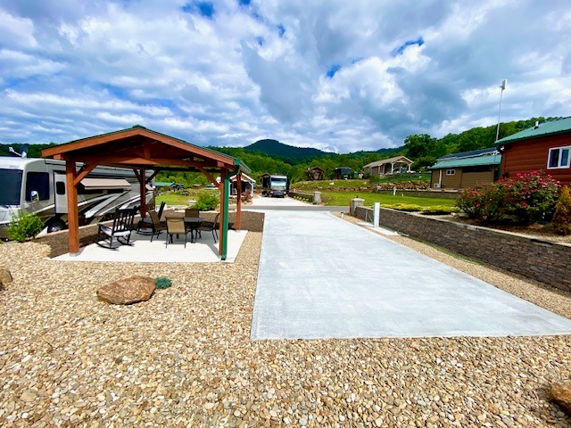 within the Olde Beau Golf & Country Club in Roaring Gap, NC. This lot offers stunning views, and you also have the option to build a home on the site, and if after 2 years you don’t want to own an RV, no problem, can still live here! The pristine community is perfect for anyone looking for an RV lot in the Blue Ridge Mountains, where summer temperatures are always 10-12 degrees cooler than the surrounding areas. The 23 × 70 ft concrete pad has two 50-amp power pedestals, allowing for back-in or pull-in setup, with water and sewer already in place. Located on Highway 21 between Sparta and Elkin, you’ll enjoy access to Olde Beau Golf & Country Club’s 18-hole golf course, pro shop, pools, pickleball and tennis courts, fitness center, and restaurant and many community activities. Stunning Blue Ridge Mountain views and beautiful sunrises and sunsets await you here!