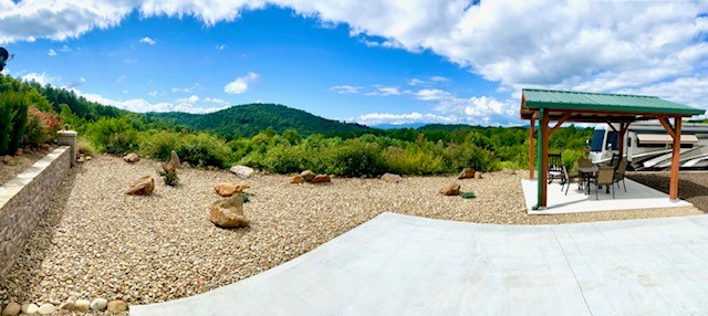 This .08-acre lot, with its 70’ x 16’ pad, is move-on ready with 30- and 50-amp service, an outdoor 10×10 covered patio, low-maintenance landscaping, and room to build the casita of your dreams.