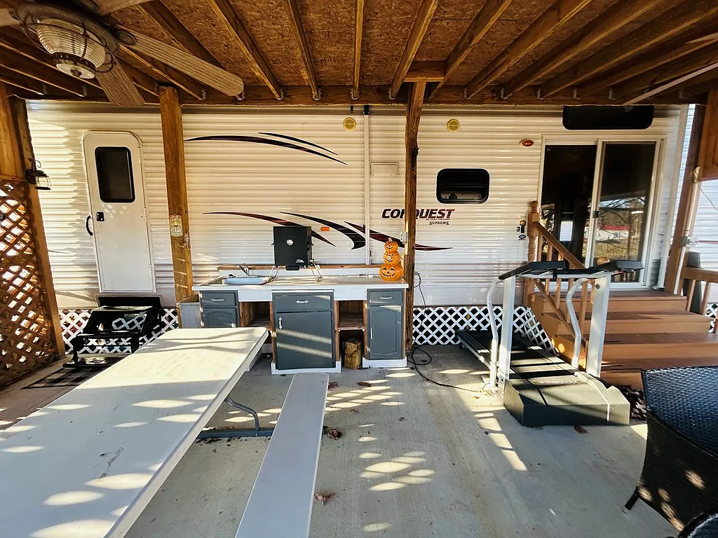 Welcome to Grey’s Point Camp, an active and vibrant community, where you can find yourself in your dream home away from home. We have a stunningly beautiful camper home with 3 bedrooms, 2 bathrooms, for sale, featuring a beautifully designed living space. Located in Topping, VA, this property offers the perfect blend of modern amenities and timeless charm. Step inside to find an open-concept floor plan, with a living area, a room that can be used for an office or a bedroom, a full bath, and a new mini-split (installed 2021). Inside the RV, you have a new roof installed in 2023, new flooring installed in 2023, a kitchen, a living area, a bedroom, a bathroom, and a 3rd bedroom with a full-sized bed and a twin bed. The additional space located in the screen room has beautiful views of the water. This camper is fully furnished on the inside and has a large new shed. Outside, you will enjoy two decks with unlimited views of the water, ideal for entertaining or just unwinding. Located in the desirable Grey’s Point Camp, residents enjoy access to a range of premium amenities, including the Rappahannock River access, resort-style pools, beach, sundeck, walking trails, entertainment most weekends, a marina, playgrounds, a pickleball court, volleyball, basketball, dog parks, and lots of other activities for all ages. Conveniently situated near shopping, dining, parks, theater, and more, you’ll have everything you need just minutes away. Whether you’re looking for relaxation or recreation, this vibrant community has it all.