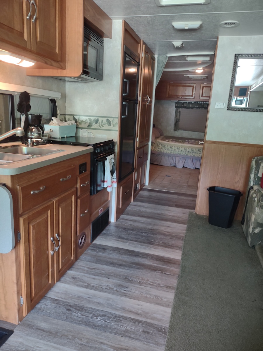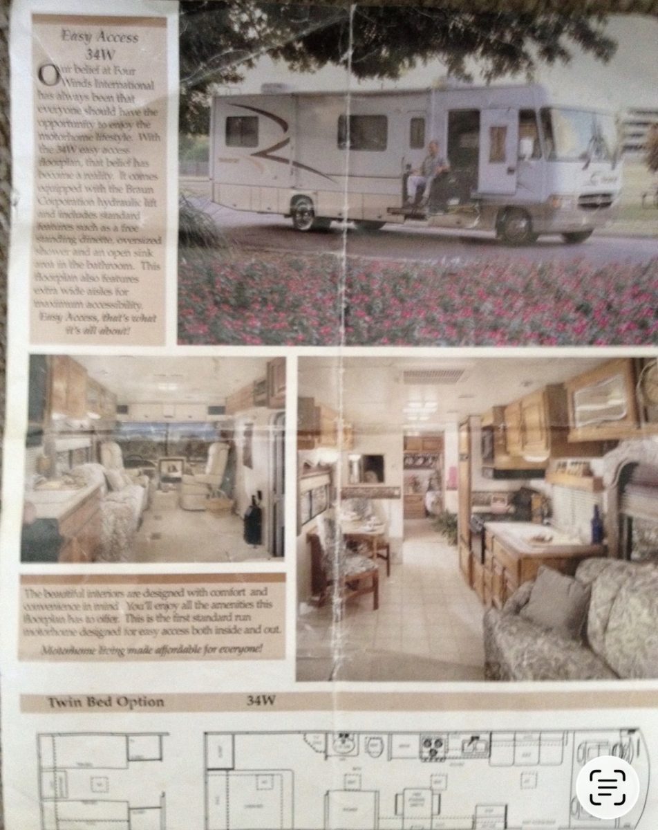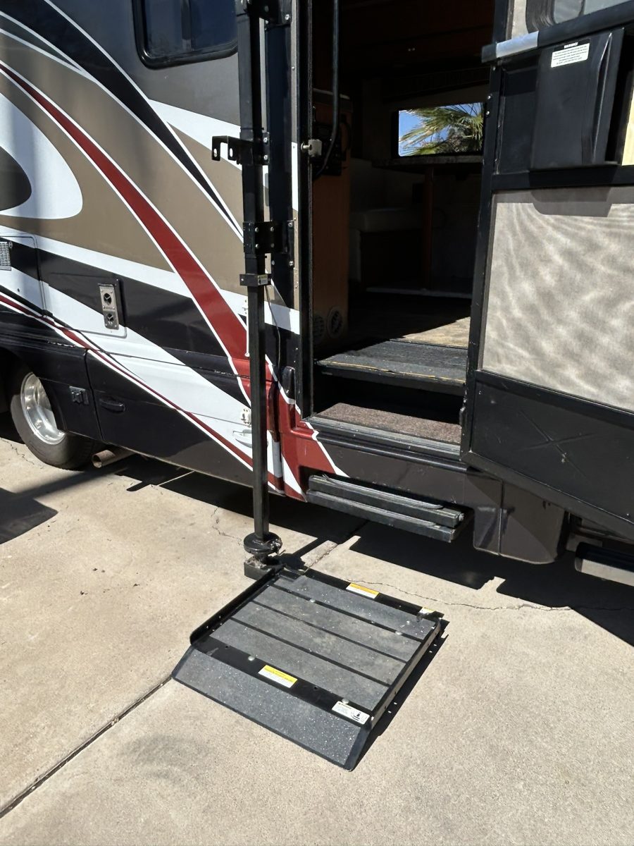 Want to become Snowbirds, but one of you is less than steady on his or her feet? This lift-equipped motorhome allows access, and with 20 grab bars and handholds throughout the coach, it lets your loved one walk front to back without having to let go. A walker can even be used when the slides are out! (This is NOT wheelchair accessible) It comes fully equipped with kitchen gear, towels, and bedding: Bring your clothes and food, and Take Off! We are including an electric scooter for park mobility. Everything works, with many upgrades and repairs since 2021. Low mileage at 45,200. The generator has 1046 hours.