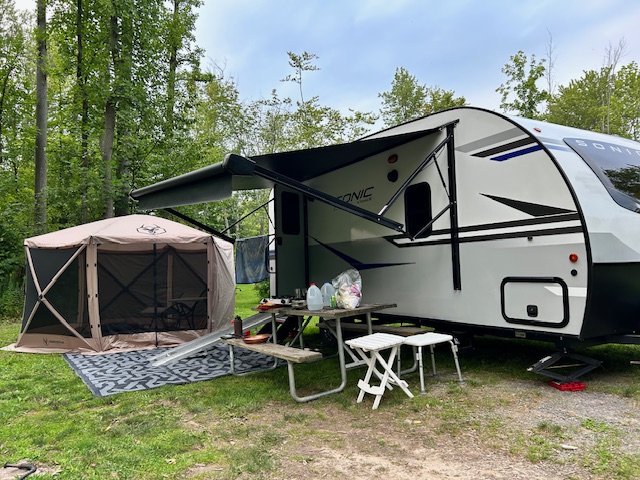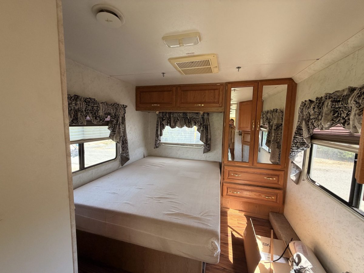 New tires, 10” memory foam mattress, roof & external solar, 2 deep cycle batteries, hitch receiver-knuckle & stabilizer bars, sewer lines-support & attachments, water hose & filtration, spare tire, electric surge protector & many more.