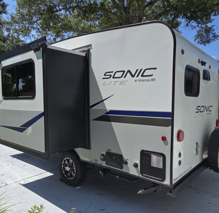 This 2020 Firestorm was custom made by Dune Sport in Meza, Arizona. It has a handicap accessible shower with bench and grab bars. Also grab bars near the toilet. There is a queen bed in the front. The kitchen is in the center with large fridge, stove w/oven, pantry and lots of cabinet space. The back end has 2 couch/beds that fold flat if hauling toys. They’re is also a folding table that goes between the couches for mealtime. There is a new tankless water heater. Two AC units keep it cool even in hot west Texas weather. We have upgraded to a motorhome and would love for this RV to bring many happy memories to a new family.